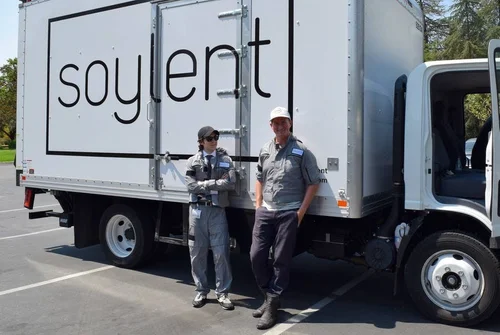 I know these photos just look like a bunch of people crowding around a cube-truck, but the reason they are is pretty cool. HBO’s “Silicon Valley” included Soylent trucks in the season three opening credits. We took it to the next logical step, branded a cube-truck, stocked it with Soylent, and made deliveries to tech companies in the real Silicon Valley. With HBO’s blessing, Josh Brener (who plays Big Head in the show) joined founder Rob Rhinehart in making deliveries to eBay, GoDaddy, and Google’s X.